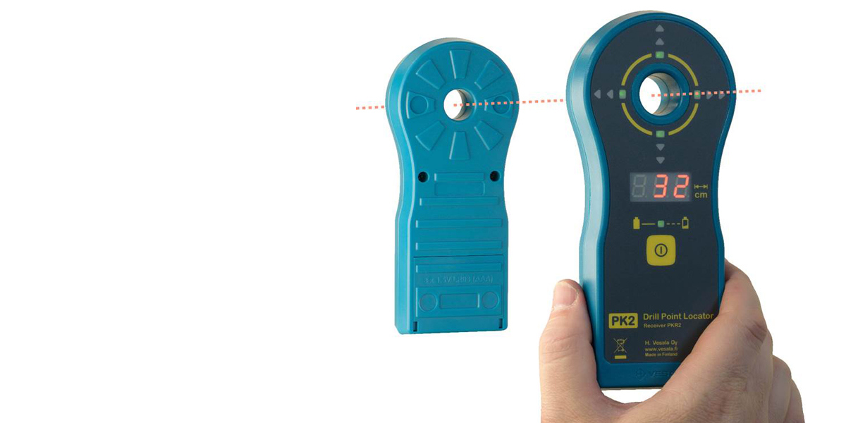 PK2 innefattar sändare PKT2 och mottagare PKR2. Vanligtvis placeras sändaren med lim kit till den önskade borrplatsen på ena sidan väggen. Mottagaren placeras på motsvarande plats på andra sidan väggen.