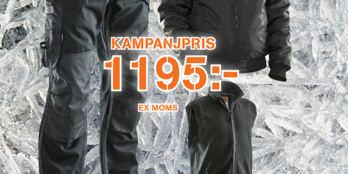 Komplett paket för dig som arbetar ute på vintern! Hantverksbyxa, varm väst och en fodrad vinterjacka. Paketpris 1195:-. Kontakta oss för beställning!