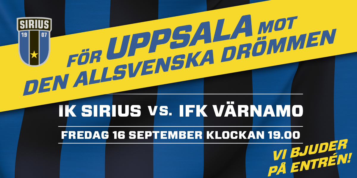 Maskin & Verktyg samarbetar med Sirius Fotboll. Vi är stolta över att kunna bjuda Uppsalapubliken på fri entré när Sirius möter Värnamo fredagen den 19 september.