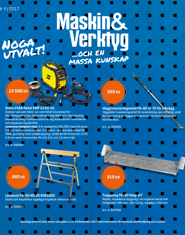 - Stort fokus på arbetskläder, skyddsskor och skyddsutrustning- Elverktyg från Bosch, DeWalt, Festool, Hitachi, Makita & Milwaukee- Kampanjen gäller t.o.m. 29 December 2017