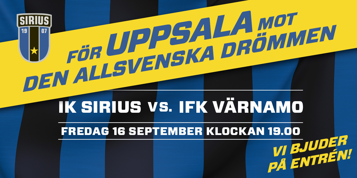Maskin & Verktyg samarbetar med Sirius Fotboll. Vi är stolta över att kunna bjuda Uppsalapubliken på fri entré när Sirius möter Värnamo fredagen den 19 september.
